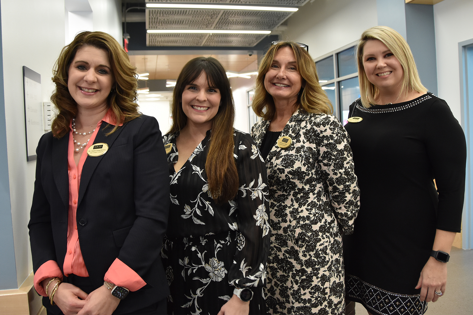From left, Dr. Karie Solembrino, dean of health professions, Katie Nicholson, outreach coordinator, Stefanie K. Rider, executive director of the foundation and director of development, and Angie N. Hayden, director of admissions, all of Wor-Wic Community College, welcome visitors to the Patricia and Alan Guerrieri Technology Center.