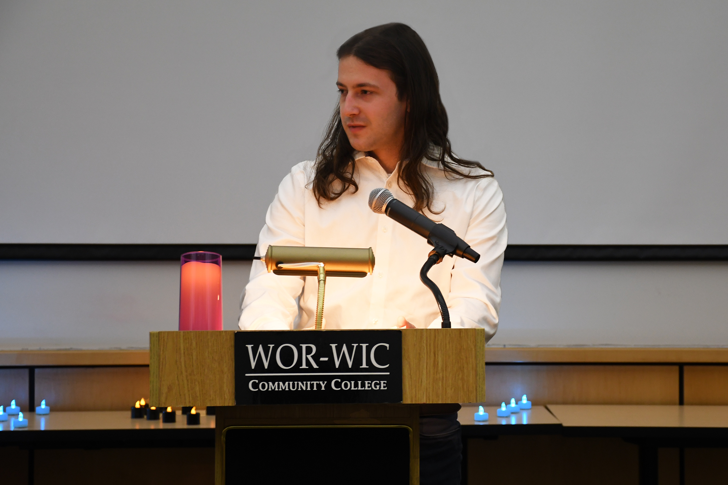 Mindful of National Poetry Month, nine Wor-Wic students and alumni who had been published in various issues over the past years shared their poems to a crowd of faculty, staff, students and community members. The featured readers included Robert Senesi, Tyree Price, Anna Conley, Rebecca Jones-Hochmuth, Brodie DeHart, Ryan McNiff, Waetina Tingle and Kim Vallejo. The event was also streamed online to additional audience members.